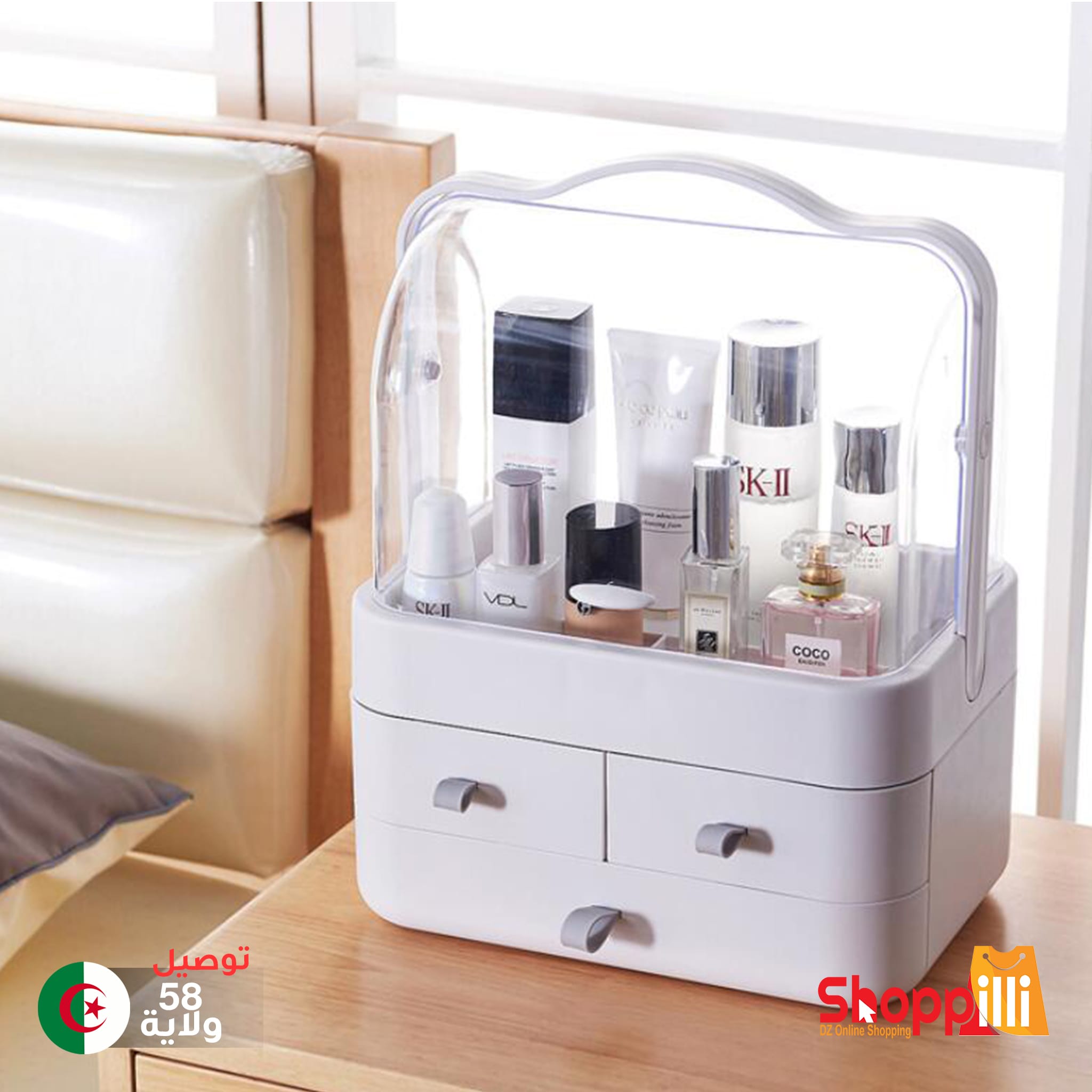 يتميز بقدرته في تخزين جميع انواع مستحضرات التجميل و الاكسسوارات كما يتميز بشكله الجذاب و بخفته و انسيابيته مع وجود مقبض مما يسهل عملية نقله لاي مكان